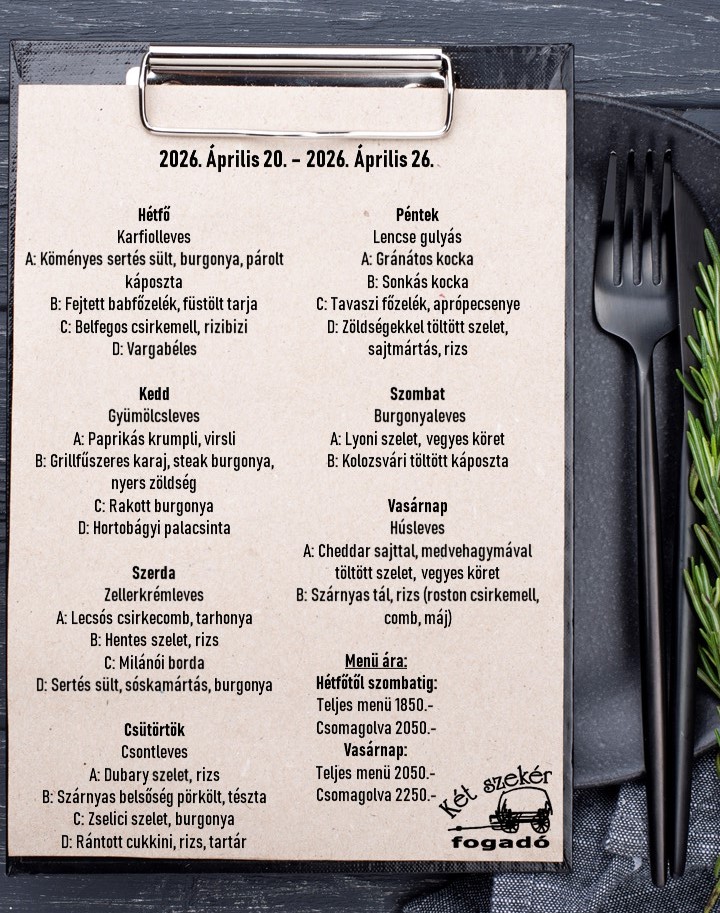 Az étlapon felsorolt ételek, napi menük, az alábbi